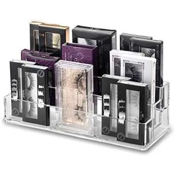 Show moreDiscover the ultimate solution for eyelash organization with this stunning three-tiered eyelash organizer, designed to bring order and elegance to your beauty routine. Crafted from a single piece of the highest quality crystalline acrylic, this organizer showcases a flawless clear look that enhances your vanity while ensuring durability and functionality. Measuring 10.2L x 3.15W x 3.38H inches, it features slots specifically sized at 10.2L x 1.08W x 1.57H inches, accommodating up to 18 individual standard-sized lash containers seamlessly.