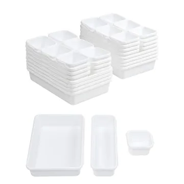 Show moreTransform your cluttered drawers into pristine spaces with the BYCY 32 PCS Drawer Organizers! These organizers are exceptionally designed for anyone tired of rummaging through messy drawers, offering an all-in-one solution to keep your belongings neatly stored. Made from high-quality, durable plastic, this extensive set includes 32 versatile pieces—8 large bins, 12 medium bins, and 12 small bins, enabling you to tackle any organizational challenge. Whether you’re looking to streamline your office desk, kitchen area, or bathroom cabinets, these bins adapt seamlessly to your needs!