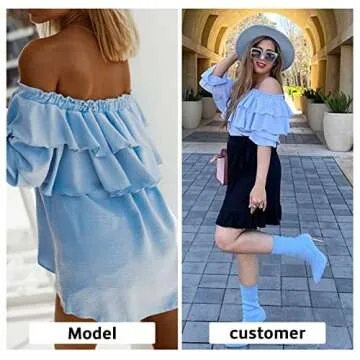 Unlike many similar products, the Byinns blouse stands out due to its quality chiffon material and exquisite ruffle design. While competitors may offer basic off-shoulder styles, this top combines elegance and comfort with its soft fabric and unique Spanish cut, making it versatile enough for both casual and semi-formal occasions. Furthermore, the attention to detail and range of sizes ensure that every body type can enjoy this stylish top.