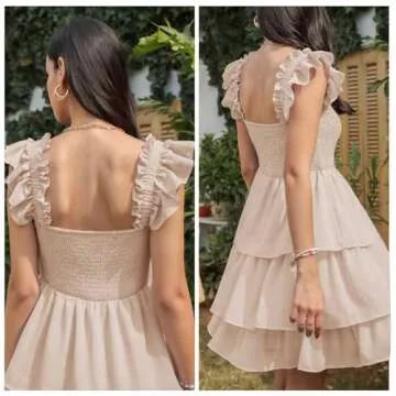 Show moreStep into a realm of elegance and charm with the Byinns Womens Square Neck Sleeveless Ruffle Dress. This beautifully crafted dress combines comfort with style, making it not only a staple in your wardrobe but also a head-turner for any occasion. Constructed from 100% polyester, this dress is soft, smooth, and durable, ensuring a breathable and lightweight experience. The triangle cut of the square neckline complements a variety of silhouettes, while the backless design adds a touch of allure to your overall look. With its high-waisted and A-line silhouette, this short mini dress highlights your figure while providing you with unparalleled comfort. The tiered design doesn’t just speak of fun; it whispers sophistication, making you look like a stunning fairy wherever you go.
