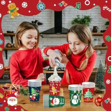 BYMIOYA 48 Pcs 9oz Christmas Paper Cups, Disposable Cups with 6 Designs Including Santa Claus, Christmas Trees, etc. Perfect for Xmas Party Drinks, Coffee, and Wine, for Christmas Night Decorations