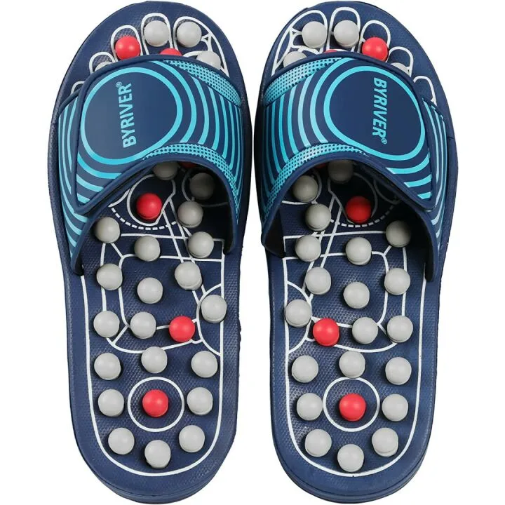 Show moreWelcome to a world of rejuvenation and relief with the Byriver Acupressure Massage Slippers – the ultimate solution for aching feet. These innovative therapeutic sandals are designed to target and alleviate foot pain, offering a unique combination of comfort and healing. Manufactured by Byriver, a trusted name in wellness and therapeutic products, these sandals are not just ordinary footwear; they are a tool for better health. With 39 built-in massage buttons on each slipper, every step stimulates foot acupuncture points, promoting blood circulation and enhancing overall physical mobility. Whether you suffer from plantar fasciitis, arthritis, or simply need a way to relax after a long day, these acupressure slippers are crafted to meet your needs.