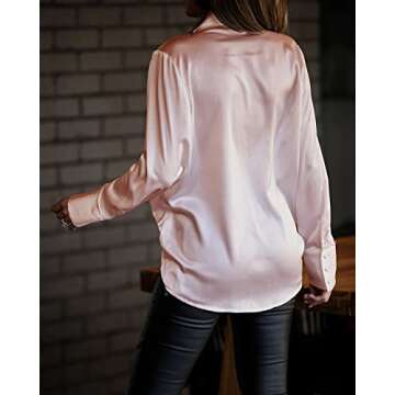 Elevate your office wardrobe with the BZB Women's Long Sleeve V-Neck Satin Shirt, a perfect blend of elegance and comfort. This pullover top is designed with a modern lapel and a flattering V-neckline that adds a touch of sophistication to any professional outfit. Crafted from high-quality satin fabric, it provides a luxurious feel against your skin, making it ideal for long workdays. Available in a chic solid pink color, this versatile shirt pairs beautifully with skirts, trousers, or even jeans for a more...