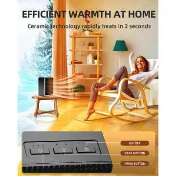 BZGG Space Heater, Small Portable Electric Heaters 1200W/800W, 2/4/6H Timer, Fast Heating, Tip-Over and Overheat Protection, Mini PTC Ceramic Room Desk Heater for Office Bedroom Indoor Use