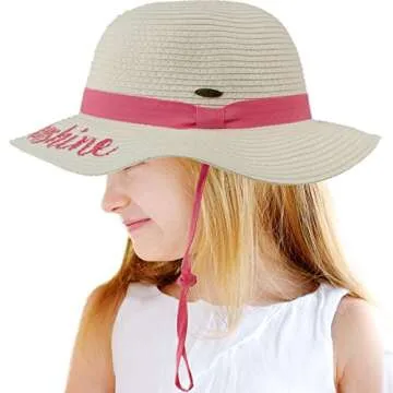 C.C Girls Kids Wording Sayings Summer Beach Pool Floppy Dress Sun Adjustable Hat Hello Sunshine, White