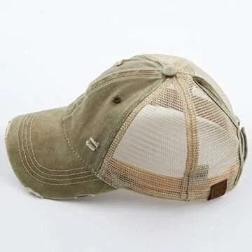 C.C Washed Distressed Denim Ponytail Adjustable Baseball Cap (BT-12) in Olive