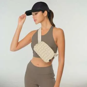 C.C Quilted Puffer Fanny Pack For Women Unisex - Daily Waist Crossbody Belt bag With Adjustable Strap (Beige)