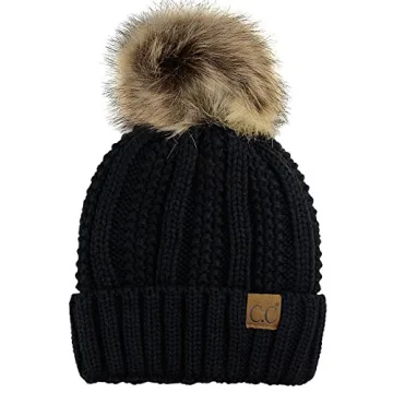 Embrace winter in style with the C.C Thick Cable Knit Faux Fuzzy Fur Pom Fleece Lined Skull Cap Cuff Beanie, a perfect accessory for those seeking warmth and chic fashion. Crafted from 100% acrylic, this hat provides an exceptional combination of comfort and durability, ensuring it withstands even the coldest of temperatures. The inner fleece lining adds a luxuriously cozy feel, making it ideal for keeping snug as you navigate winter's chill. Its sophisticated faux fur pom not only amplifies the visual appeal,...