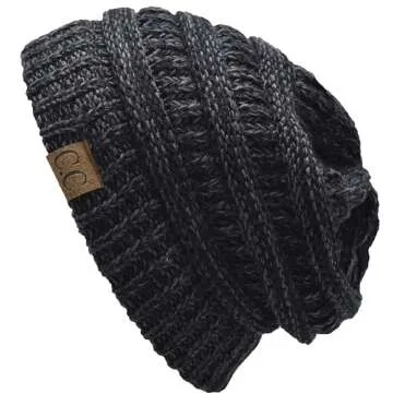 C.C Trendy Warm Chunky Soft Stretch Cable Knit Beanie Skully, 2 Tone Black/Charcoal