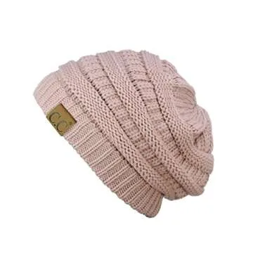 C.C Trendy Warm Chunky Soft Stretch Cable Knit Beanie Skully, Rose Pink