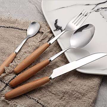 When compared to other dinnerware sets on the market, the C&L 40 Pieces Wood Stainless Steel Dinnerware Set stands out due to its exceptional blend of quality materials and stunning design. While many competitors may offer stainless steel cutlery, they often lack the elegance of wooden handles. The craftsmanship ensures durability and comfort that many generic brands do not match. Additionally, C&L’s set provides a complete 40-piece collection, making it one of the most comprehensive offerings available, ensuring you won’t need to supplement your utensils anytime soon.