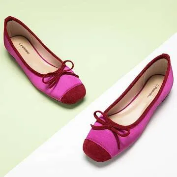 C.Paravano Flats Shoes for Women | Women's Flats | Pink Ballet Flats | Womens Square Toe Shoes | Slip On Dressy Shoes | Knot Flats (Size 7.5,Hotpink-c)