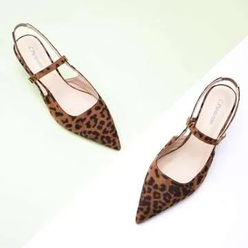 C.Paravano Women's Pointed Toe Slingback Heels Slingback Kitten Heel Pumps Leather Kitten Heels Women Women's Slingback Heels Slingback Pumps for Women(Size 8,Leopard Heels)