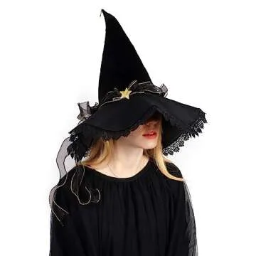 C-ZOFEK Black Velvet Witch Hat with Lace Brim for Women Wizard Cosplay Halloween Party Costume (Style A)