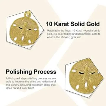 CA CHARMAMERICA Gold Sand Dollar Charm - 10 Karat Solid Gold - Sand Dollar Pendant - Beach Jewelry (Large)
