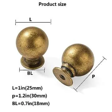 CABDM Brass Drawer Knobs 10 Pack 1 Inch Antique Brass Cabinet Knobs Kitchen Cabinet Hardware Vintage Ball Knobs Antinque Gold Pulls for Drawers.