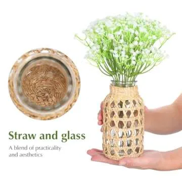 Show moreIntroducing the Cabilock Glass Flower Vase with Rattan Cover, the perfect decorative companion for your home or office. This exquisite vase integrates fine craftsmanship with elegant design, featuring a delicate woven vine exterior that complements its clear glass base. Designed not only for beauty but also for functionality, it serves as a stunning centerpiece whether you're showcasing fresh flowers or simply adding a touch of charm to your decor. Ideal for any setting, this vintage-style floral container is versatile, making it suitable for bedroom, living room, dining spaces, and even office desks.