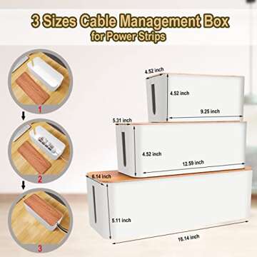Cable Management Box 3 Pack with 125PCS Cable Management Kit for Power Strip to Hide Wires,Cord Organizer Boxes,Safe ABS Material Wire Organizer of Cable Clips Sleeve