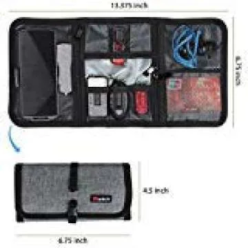 Cable Organizer, Travel Organizer, Valkit Best Electronics Accessories Wire Cord Cables Tires Wrap Case Cover Bags Rolling Organizer Can Fit Cosmetic for Weekender Travel Management, Small Size-Grey