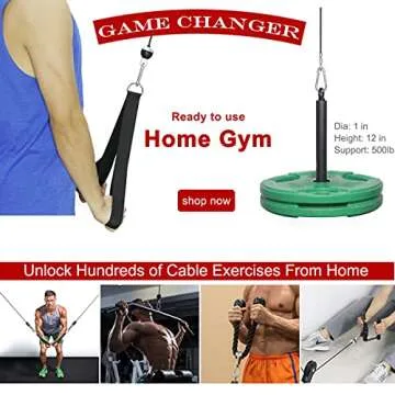 Cable Pulley System Gym Equipment, Squat Rack Accessories for LAT Pulldown, Tricep, Bicep, Arm Workouts - DIY Home Gym Cable Machine - Weight Plates Loading Pin (Basic+1''Loading pin+Strap Handle)