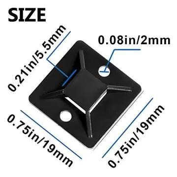 Show moreIntroducing the Cable Tie Mount and Zip Tie, your ultimate solution for an organized and clutter-free space. This set includes 200 small adhesive squares designed specifically for cable management. Each mount measures just 3/4 inches, making them the perfect size for securing cables and wires without taking up too much space. Crafted with pro-grade UV-resistant materials, you can trust these mounts to hold firmly both indoors and outdoors, ensuring a neat environment wherever you choose to use them.