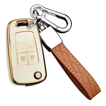 Elevate the protection of your Chevy key fob with our premium TPU cover, designed to offer full protection against drops, dust, and scratches. This stylish and elegant key fob cover is compatible with a wide range of Chevy models including Equinox, Camaro, Cruze, Malibu, Sonic, and more. Made from high-quality soft TPU, it ensures a comfortable and soft touch, with a super thin design that fits like a glove. The keychain, crafted from premium leather and aluminum alloy, adds a touch of class and durability....