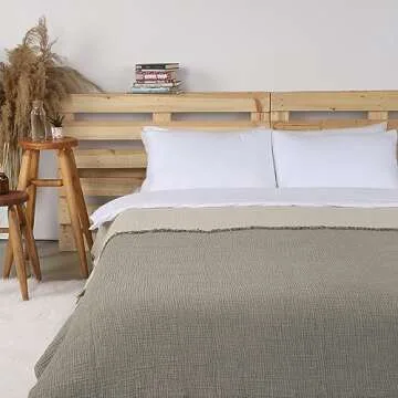 Cacala Muslin Throw Blanket – Muslin Blankets for Adults – Natural Cotton Throw Blankets for Bed and Sofa – Soft and Lightweight 4 Layers – All-Season Boho Throw (51" x 67", Green)