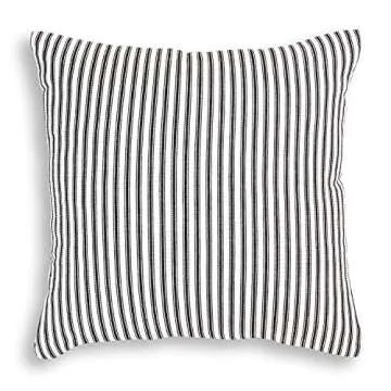 Cackleberry Home Black and White Ticking Stripe Woven Cotton Decorative Square Throw Pillow Case Covers 22 x 22 Inches, Set of 4