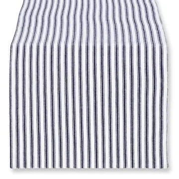 Cackleberry Home Navy Blue and White Ticking Stripe Woven Cotton Table Runner Reversible 14 x 108 Inches