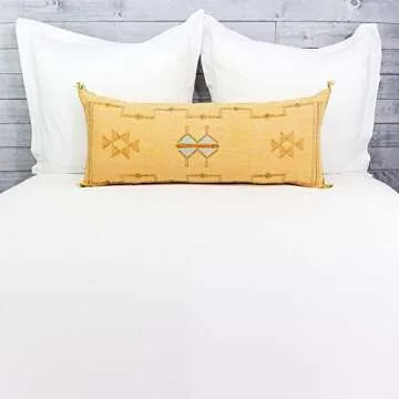 Cactus Silk Cushion, Moroccan Lumbar Pillow, 14x36, Yellow, Bohemian Pillow Cover, Embroidered Decorative Lumbar Pillow. (Yellow - With Insert Filled)