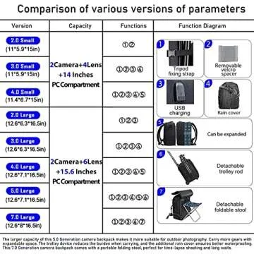 CADeN Camera Backpack Bag Professional for DSLR/SLR Mirrorless Camera Waterproof, Camera Case Compatible for Sony Canon Nikon Camera and Lens Tripod Accessories Gray