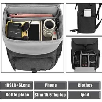 CADeN Camera Backpack Canvas Camera Bag for DSLR/SLR Mirrorless Camera with 15.6 inches Laptop Compartment, Camera Case Compatible for Sony Canon Nikon Cameras and Lens Tripod Waterproof Black
