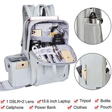 CADeN Camera Backpack w/ 15.6" Laptop Compartment, USB Charge Port, Tripod Holder, Rain Cover Compatible for Sony Canon Nikon