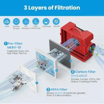 The S-550 uses a pre-filter (MERV-10), a HEPA filter, and an active carbon filter to effectively remove pollutants and odors.