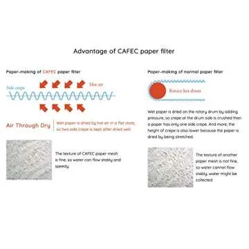 Unlike standard coffee filter papers that typically feature crepe on only one side, the CAFEC filter boasts a revolutionary "Two-Side Crepe" design. Thanks to our original air-through dry manufacturing process, both sides of this filter paper maintain their ideal height of crepe, contributing to better brewing results and reducing the chance of clogs. This technological advancement not only improves the texture but also enhances the coffee's flavor, making each cup you brew a true delight.