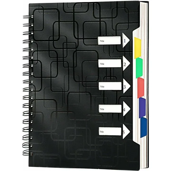CAGIE 5 Subject A5 Notebook for Work & School - 240 Pages, Dividers & Tabs