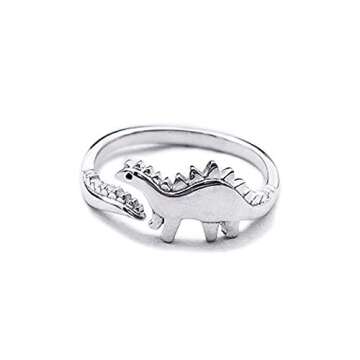 Caiyao 2Pcs Cute Dinosaur Tyrannosaurus Triceratops Ring Set 14K Silver Plated Lovely Opening Adjustable Polished Animal Ring for Women Men Jurassic Bar Era Dinosaur Jewelry Gift-B thin