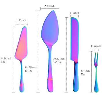 Why You Will Love This Product? Owning the Cake Server Set is not just about cutting desserts; it's an invitation to celebrate life's sweet moments in style. The stunning rainbow colors will brighten your table setting, making every occasion feel festive and special. With its premium construction and elegant design, this server set enhances your culinary presentations and creates lasting memories with every slice you serve.