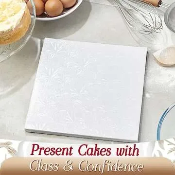 Show moreIntroducing the Cakebon Cake Boards Square – your go-to solution for elevating your baking creations! Crafted with a professional touch, these 10-inch cake drums are not just aesthetically pleasing but also offer unparalleled sturdiness. Weighing in at a robust ½ inch thick, these boards promise to hold even the heaviest of cakes without bending or buckling. Wrapped in a pristine white foil, they are perfect for any occasion, ensuring that your cake is displayed beautifully.