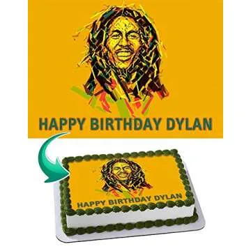 Cakecery Bob Marley Edible Cake Image Topper Personalized Birthday Cake Banner 1/4 Sheet
