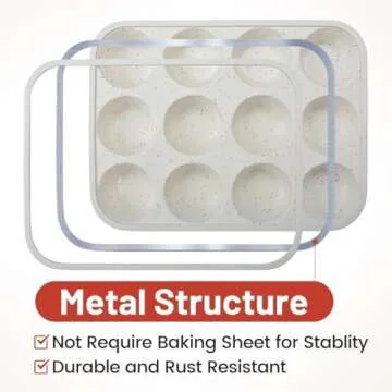 CAKETIME Silicone Muffin Pan, Metal Reinforced Frame Cupcake Pan 12 Cups Regular Size Easy to Move in or Out of Oven Non-Stick (2)
