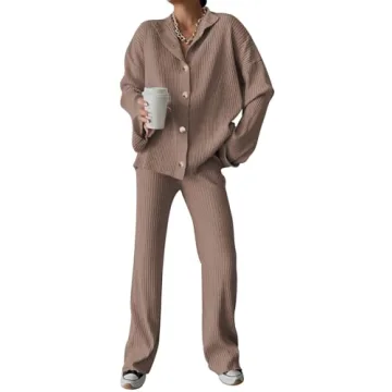 Show more Experience the epitome of comfort and style with the Cakulo Women's 2 Piece Sweater Set. Crafted from premium acrylic fabric, this set guarantees a luxuriously soft touch against your skin. The exquisite two-piece lounge ensemble is not just about quality; it's about transforming your wardrobe into a haven of comfort. With a versatile button-up cardigan featuring a chic ribbed texture, you can effortlessly switch between a flattering V-neck and a classic crew neck, allowing personal expression in your style. Its long sleeves and oversized fit make it a must-have for trendy fall outfits in 2024, ensuring you're always on point regardless of the occasion.