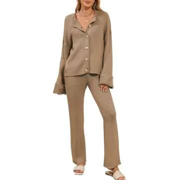 Cakulo 2 Piece Lounge Sets for Women - Button Cardigan Sweater Pants