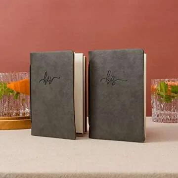 Calculs Handcrafted Wedding Vow Books Set of 2 Grey Authentic Cowhide Cover with His and Her Stamping