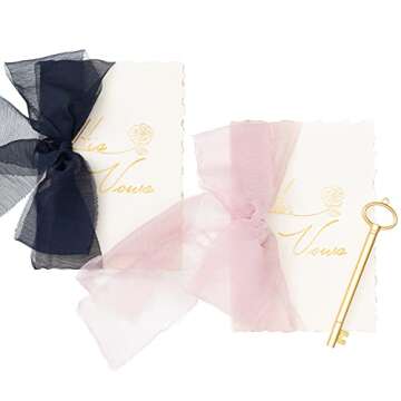 Calculs Handmade Vow Books His and Her Vow Cards with Fringe Chiffon Ribbon Vintage Wedding Vow 2 Pcs