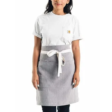 Show moreThe Caldo Linen Bistro Cafe Apron is the perfect blend of style and functionality, designed for both chefs and servers who value durability without compromising on aesthetic appeal. Crafted from a premium blend of 90% linen and 10% cotton, this apron offers a naturally stain-resistant finish, ensuring you stay looking sharp even during the busiest kitchen shifts. With dimensions of 23 inches wide by 27 inches tall and long, adjustable 40-inch waist ties, it is versatile enough to accommodate various body types comfortably. This apron not only protects you from spills and stains but also features a cell phone pocket along with two generous kangaroo pockets, providing ample storage for your essentials while you work. Whether you're serving in a bustling bistro or cooking up a storm in your kitchen, this professional-grade apron is your ultimate companion.