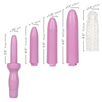 Show moreDiscover a new realm of pleasure and comfort with the CalExotics Dr. Laura Berman Dilator Set. Specially crafted for women, this innovative multi-speed vibrating dilator transforms the way you experience training and self-discovery. This expertly designed set features four interchangeable sizes, including three interlocked dilating sleeves, ensuring you have the perfect fit for your unique body. The soft universal pleasure sleeve is particularly noteworthy, stretching effortlessly to accommodate each size, making it a versatile option for every user.