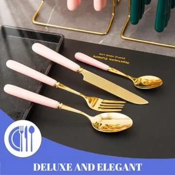 Caliamary Gold Stainless Steel Flatware Set 24 Pieces in Chic Pink
