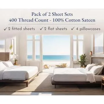 California Design Den 2-Pack Sheet Sets King Size - 400 Thread Count 100% Cotton Sateen - Extra Soft, Breathable & Cooling Sheets, Wrinkle Resistant, 2 Sets of Deep Pocket Bed Sheets - Bright White
