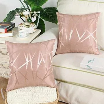CaliTime Pack of 2 Throw Pillow Covers Cases for Couch Sofa Home Decor Modern Shining & Dull Contrast Triangles Abstract Lines Geometric 18 X 18 Inches Dusty Pink